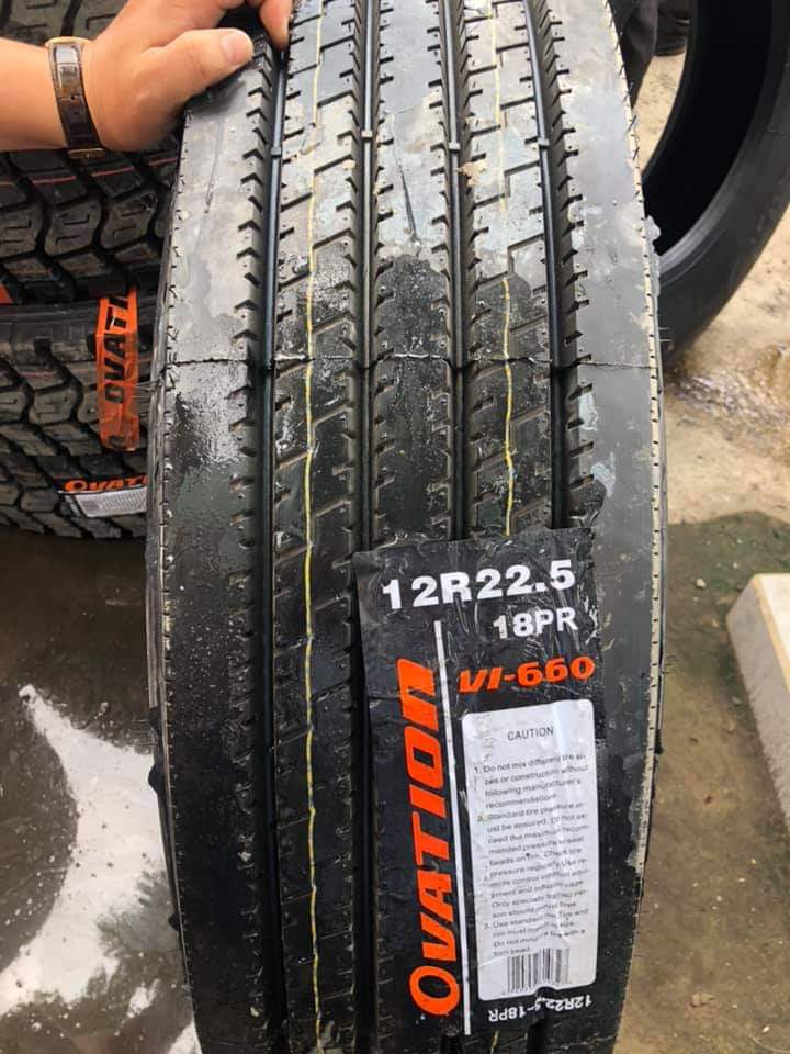 Lốp Ovation bố kẽm gai xuông 12R22.5 VI-660 chuyên sử dụng chạy đường trường cho xe tải, xe ben, container...